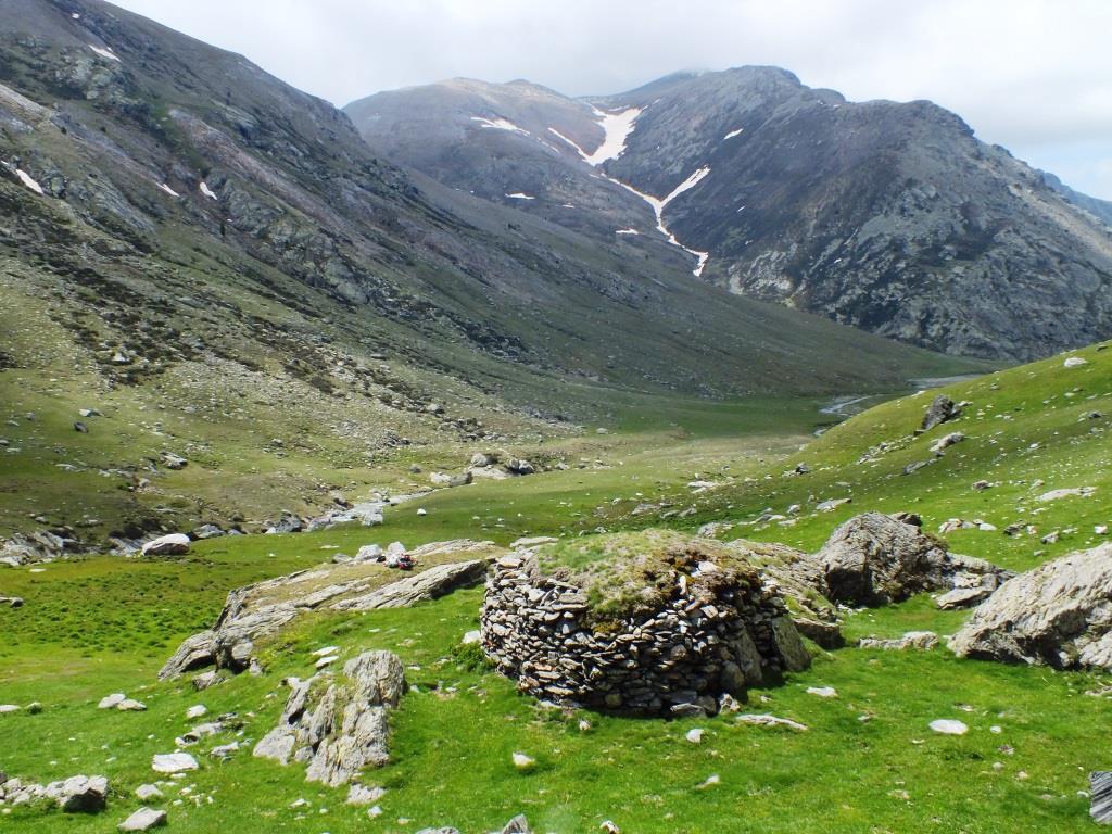 En aquesta jaça destaca una gran barraca de planta arrodonida d’uns 4,5 m de diàmetre exterior, amb una fornícula a l’interior. Al voltant de la barraca hi ha fins a cinc construccions més, totes derruïdes, que podrien correspondre a antic espais per guardar formatges (o potser fins i tot patates). També una pleta de forma quadrangular, que també podria haver estat un camp, a la banda nord de la qual es troba una pedra clavada al terra de forma vertical.