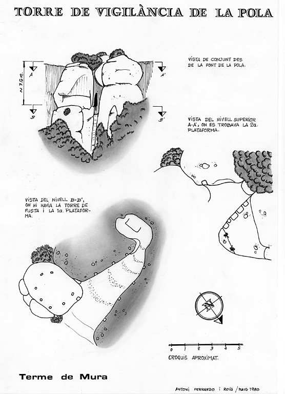Es tracta d’un conjunt d’encaixos situats a mitja paret, en un replà arrodonit, i un altre conjunt al cim de la cinglera. S’ha interpretat com una estructura defensiva medieval, però també existeixen altres explicacions alternatives (santuari solar o explotació apícola).
