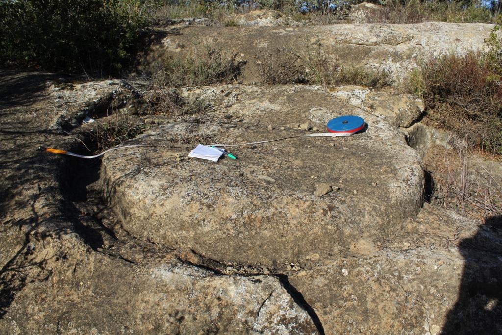 Dels set positius presents en les dues pedreres, només en quatre casos he pogut determinar el gruix, que de mitjana se situa en els 30 cm (màxim 35 cm, mínim 27 cm). Només en un cas s’ha trobat un ull, en una mola partida que es calcula que feia 130 cm de diàmetre. Aquest ulls feia 14 cm.