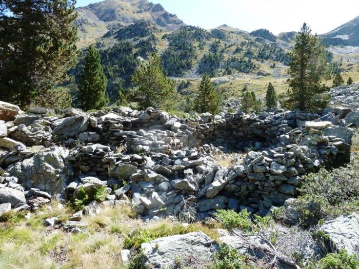 Per molt que a l’edat mitjana el clima fos més càlid que l’actual, encara no deixa de sorprendre’m un poblament a 2.200 m d’altura, en ple parc d’Aigüestortes. El conjunt està format per una dotzena de cabanes i un nombre més gran de tancats, i ha estat estudiat i descrit pel grup d’arqueologia de muntanya de la UAB. És fàcil trobar-ne informació a la xarxa.