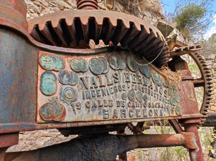 Sobta per la seva situació i perquè està just a sobre d’un gran edifici. A l’interior d’aquest hi ha diverses estances, però en una d’elles trobem una premsa d’oli fabricada l’any 1895 (segons diu la mateixa màquina), a Barcelona. Entre les runes s’intueix el corró que aixafava les olives i els arreus metàl·lics que feia servir un animal per fer-lo rodar. De tota manera, no hi ha cap dubte que era un molí d’oli mogut tant per la força de l’aigua com per la dels animals. També s’intueixen les piles de decantació de l’oli.