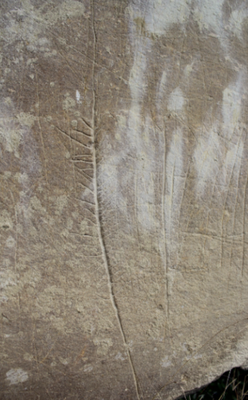 A la roca 13, despresa de la paret, troben representacions de peus i ratlles en dos dels seus extrems.