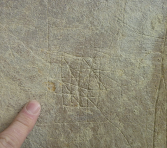 En un lloc que per raons òbvies no revelaré, hi ha tot un pany de paret amb alguns gravats de diferents èpoques. En total es pot parlar de 21 conjunts o roques.