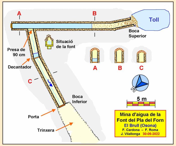 Aquesta cavitat, construïda en un moment que no coneixem, però que no pot fer massa dècades, es troba en terme del Brull (Osona). Consta de dues galeries que es tallen gairebé perpendicularment, i en total sumen una quarantena de metres.