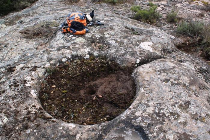 Una mica més al sud (a la primera coordenada indicada), a la codina del costat, es troba un rebaix rodó (1,20 m de diàmetre i uns 20 cm de profunditat), del qual surt un rec d’uns 90 cm de llarg, que acaba al peu de la roca. A l’interior hi ha un forat rodó de 12 cm de diàmetre. Tot plegat fa pensar en un trull per elaborar l’oli, tot i que no s’hauria conservat la pica on anava a parar aquest.