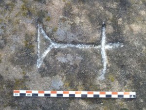 Unes ratlles naviformes, de perfil en ve baixa, i uns quinze centímetres de llarg. En el primer cas són dos trassos paral·lels, i en el tercer quatre, mentre que en el segon n’apareixen quatre que convergeixen en un dels extrems.