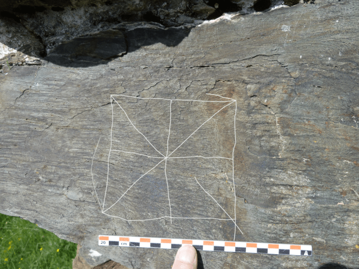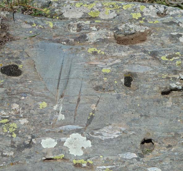 A més de les cassoletes, hi ha algunes ratlles rectilínies, d’uns dos milímetres d’amplada i amb forma d’u. Algunes de les ratlles sembla que s’originen a les cassoletes (com si es tractés d’alguna mena de xupa-xup).