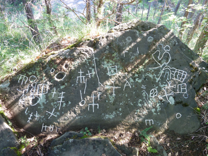 En la mateixa roca, es troben alguns gravats molt més recents, amb noms (de 1951, sembla ser) i altres símbols indesxifrables. Tot i que són més visibles, sembla que serien més recents.