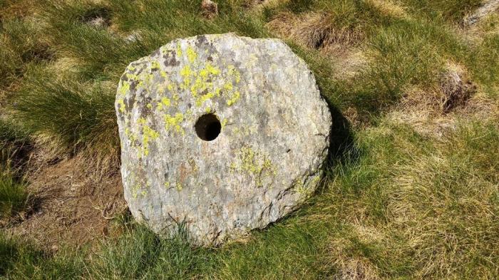 Uns 10 m al sud-oest hi ha un petit forn d’oli de ginebre, amb un cercle de 24 cm de diàmetre, on es produïa la combustió, i una regata de 95 cm de llarg que, en baixada, duia l’oli de ginebre cap a una pileta de 20 cm. El desnivell es poc, però ja era suficient per recollir el preuat oli de ginebre, tot i que segurament la seva producció devia ser molt esporàdica.
