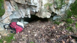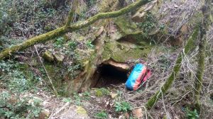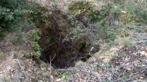 Tot fa pensar que les aigües que eren recollides a la part superior durant el episodis de pluja eren conduïts per aquest regueró (a dalt) fins a una possible pica que es trobaria en el lloc que indica la foto que teniu a l’esquerra del text (per cert, l’escala que es veu a les imatges fa 20 cm).