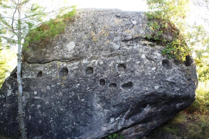 El que sí que hem vist són un conjunt d’11 cassoletes d’uns 4 cm de diàmetre, rodones, i de molt poca profunditat, que semblen distribuïdes (en part) en una línia recta. Tot fa pensar que són més antigues que la resta de gravats, perquè aquests es varen adaptar a les cassoletes per no trepitjar-les, o en algun cas es varen gravar just a sobre. Només n’ha parlat (fins on sabem) mégalithes du monde.