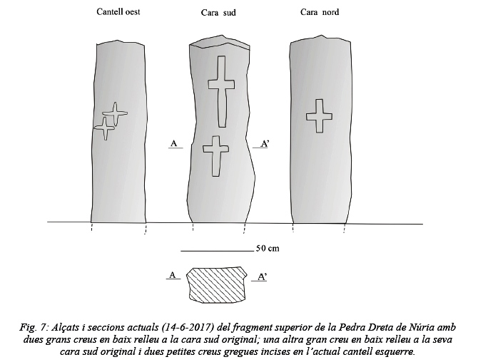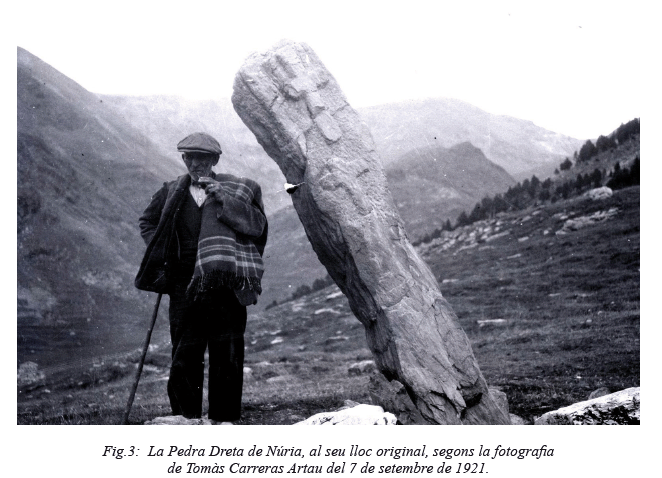 L’any 2017 es va publicar un article sobre la Pedra Dreta de Núria, o més aviat sobre el que en queda. Podeu trobar l’article complet aquí, però si us fa mandra, us en faig el meu resum: