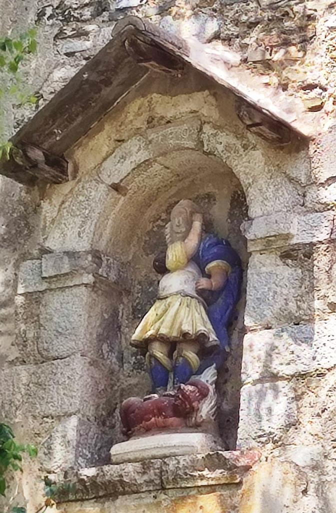 Avui dia, que no es pot ni entrar al petit pati que hi ha davant de l’església per mirar l’estàtua amb comoditat, presenta un aspecte força curiós. Vaja, que si no llegeixo la Wikipedia no sé interpretar de què es tractava.