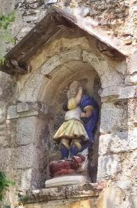 Es veu que el color de la cara del sant deriva del fet que l’any 1936 la imatge es va treure del lloc i quan hi va tornar (1940) ja no tenia cap. La vivor dels colors de la resta de la imatge s’explica perquè ha estat repintada diverses vegades per un artesà d’Olot.