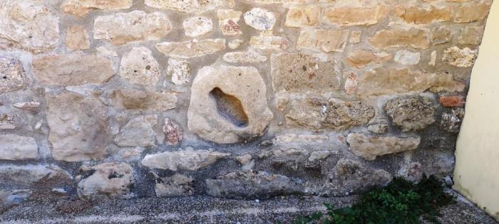 Una de les pedres que delimiten l’era, a tocar de les tines, podria haver estat un contrapès de premsa, però en tot cas retallat.