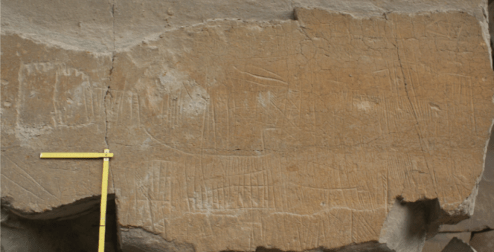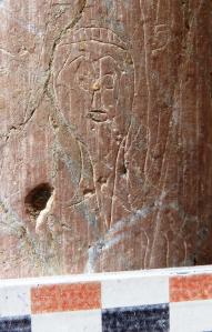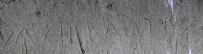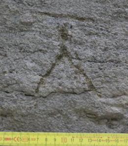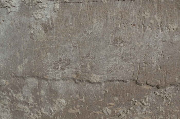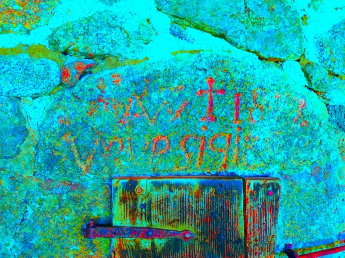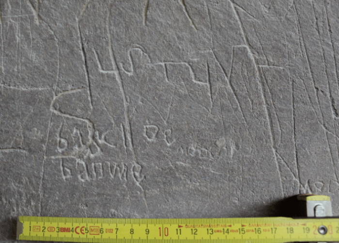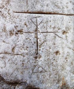 Al seu costat hi ha algunes coses gravades que no es distingeixen i que podrien ser anteriors i al costat hi ha uns números. Sembla que diuen 186 i que segurament feien referència a algun any de la dècada dels seixanta del segle XIX (l’últim número s’hauria perdut en caure un tros de pedra).