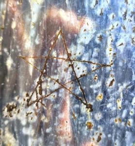 En les seves cinc columnes de marbre i en el banc que ressegueix l’interior del porxo es poden veure diferents gravats, entre els quals diversos pentacles i una figura en forma de creu.