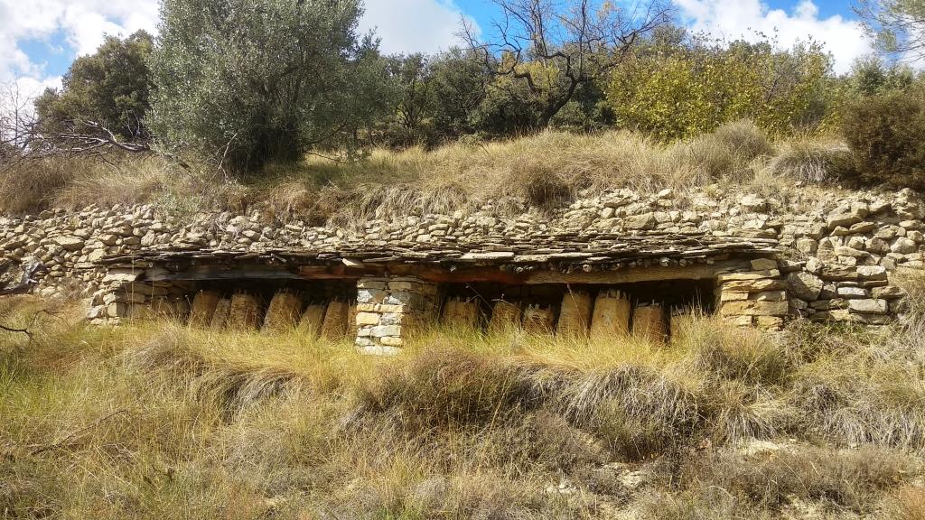 A Pelegriñón (Alcampell, Osca), atrets per un topònim que al mapa de l’IGN deia “El Arné”, vàrem descobrir un tipus d’arner del qual només hem trobat dos exemples a Catalunya. Es tracta d’una cavitat excavada a la terra, a l’interior de la qual se situaven algunes arnes, segurament en posició horitzontal, tal com es veu en la segona foto, que va ser presa el mes de febrer de 2019, a la Llitera (San Esteban).