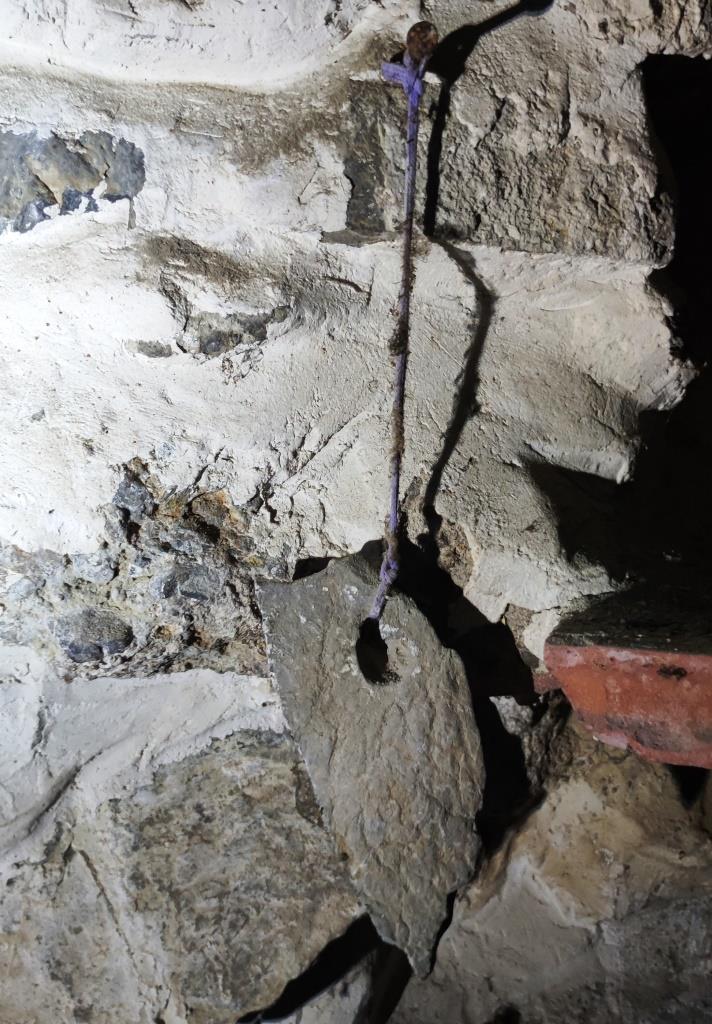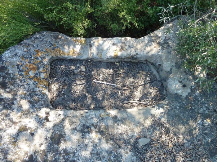No massa lluny d’aquest tancat, continuant el mur de la part superior, apareix una cavitat rodona de 23 cm de diàmetre i 26 cm de fons, amb el fons pla. Semblaria un lloc per anclar-hi algun pal vertical, però no es veu quina relació pot tenir amb la resta.