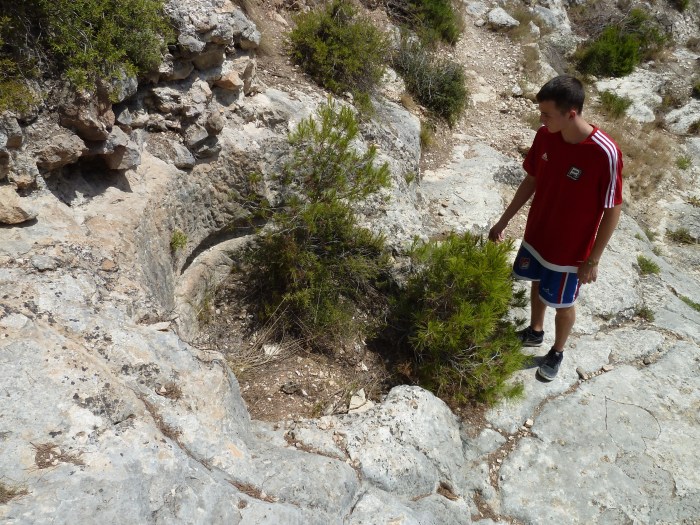 Aigües avall, el camí es converteix en un rec tallat a la roca, amb una bifurcació i tot. No l’hem seguit més avall per no tenir temps.