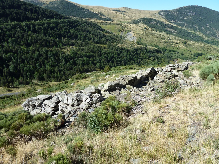 Els d’Escartín “Consisten en grandes cercas de piedra, muros levantados sin ningún tipo de argamasa –piedra seca– y de gran grosor, con la forma de una U alargada y con unas medidas aproximadas de 30/40 metros de largo por 4/5 de ancho, a excepción del sito en la punta del cerro, más redondeado para acoplarse al terreno.”