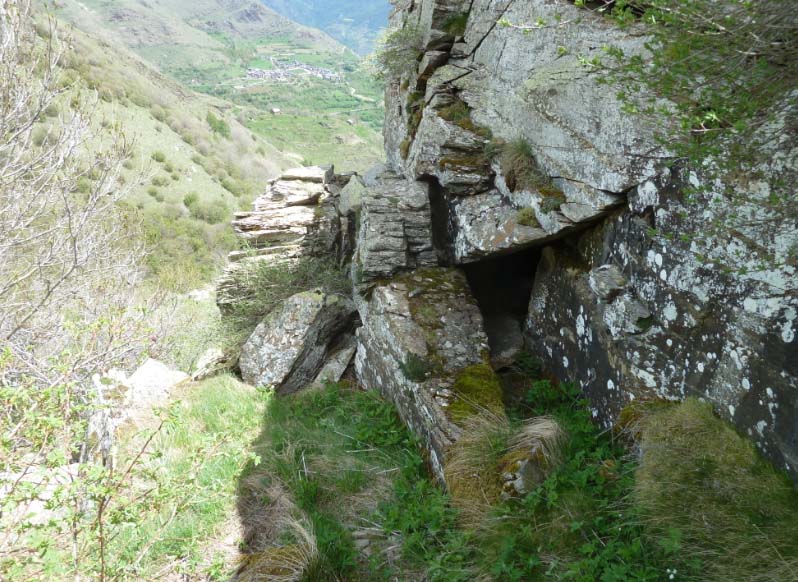 Aprofitant una petita cavitat natural que va ser eixamplada es troba un refugi molt baix però suficient per estirar-se i resguardar-se dues persones.