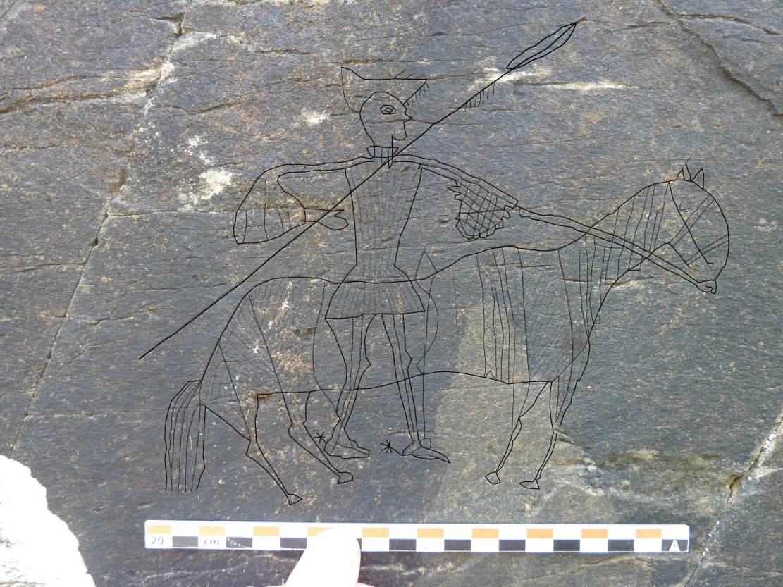 De l’antiguitat d’aquest orri en dona fe un gravat segurament medieval que trobem en una de les seves parets. Com es veu en la imatge, s’hi veu un cavaller dalt d’un cavall, amb una llança. El gravat, tot i estar parcialment cobert per una pàtina de líquens, encara es veu magníficament, i segur que no és el més modest de la zona (que com sabem n’és ben rica).