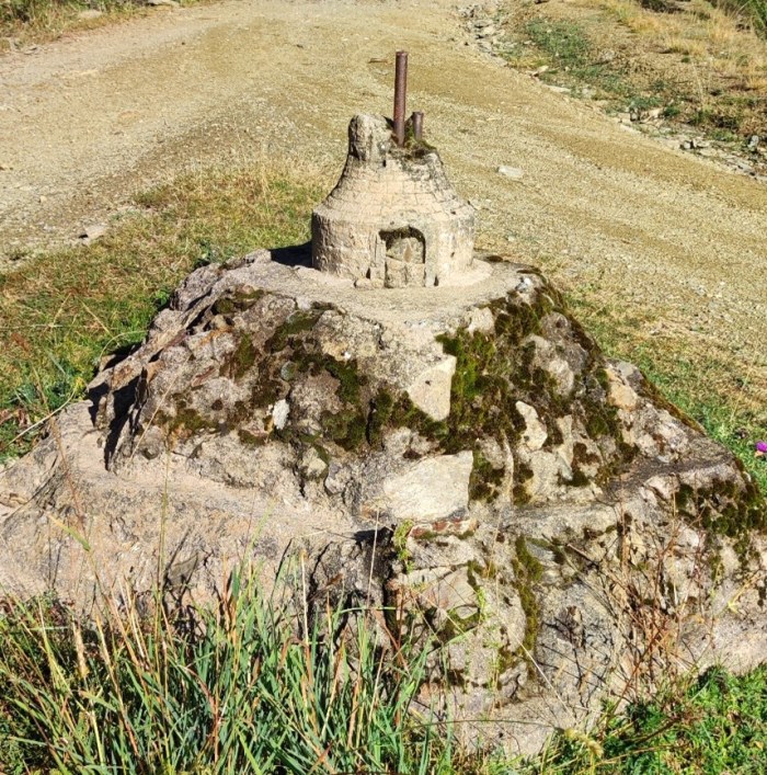 A final de la pista, avui dia enmig del bosc, trobem una excavació que tot sembla suggerir que era per hostatjar un búnquer que mai no es va construir. En tot cas, cal notar que −tal com ens indica el mapa− l’any 1945 ja hi era.