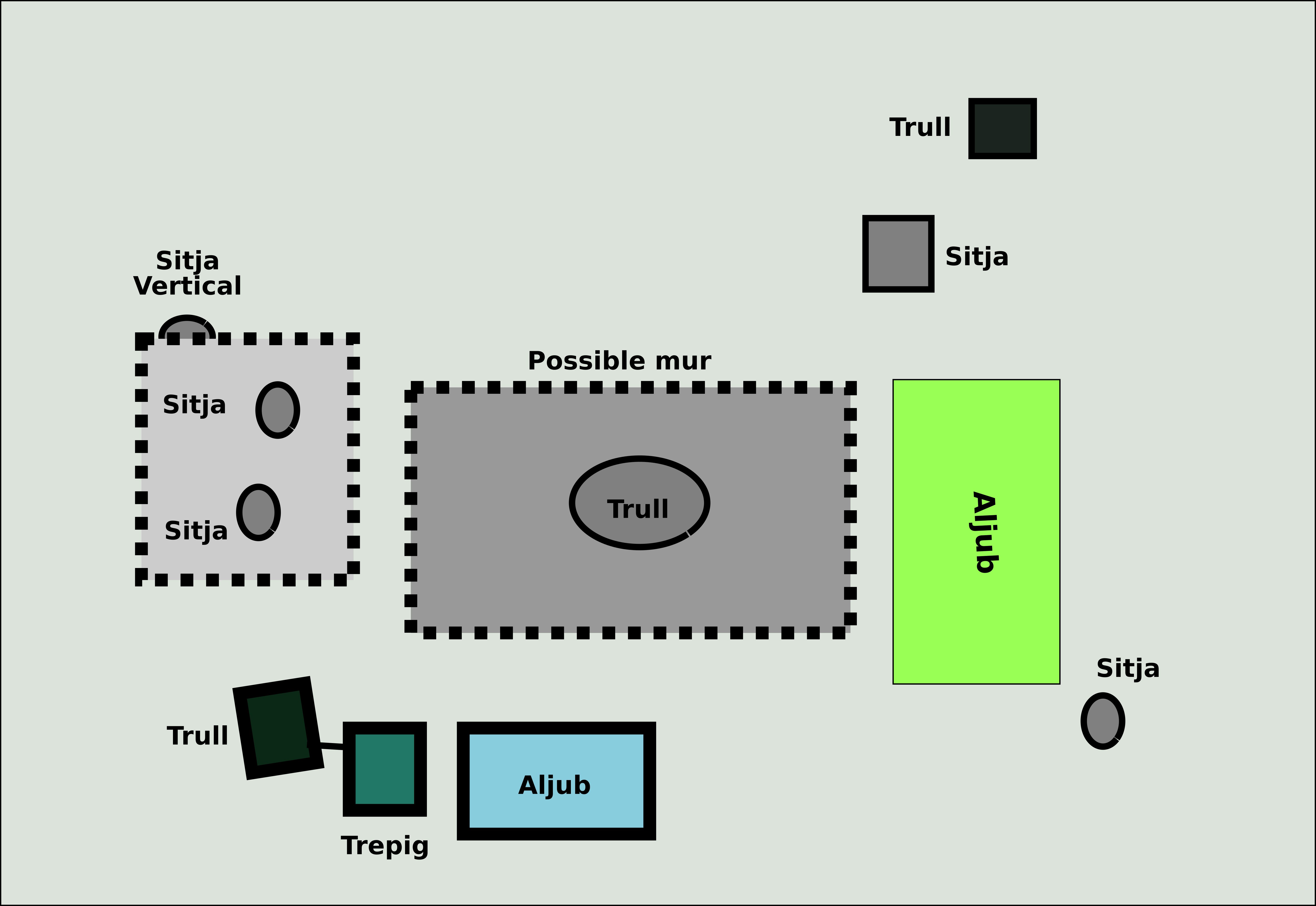 Al sud hi ha una sitja quadrada d’un metre de costat, a la boca (com totes les altres té forma acampanada) i un possible trull o dipòsit d’aigua d’1,80 m de costat.